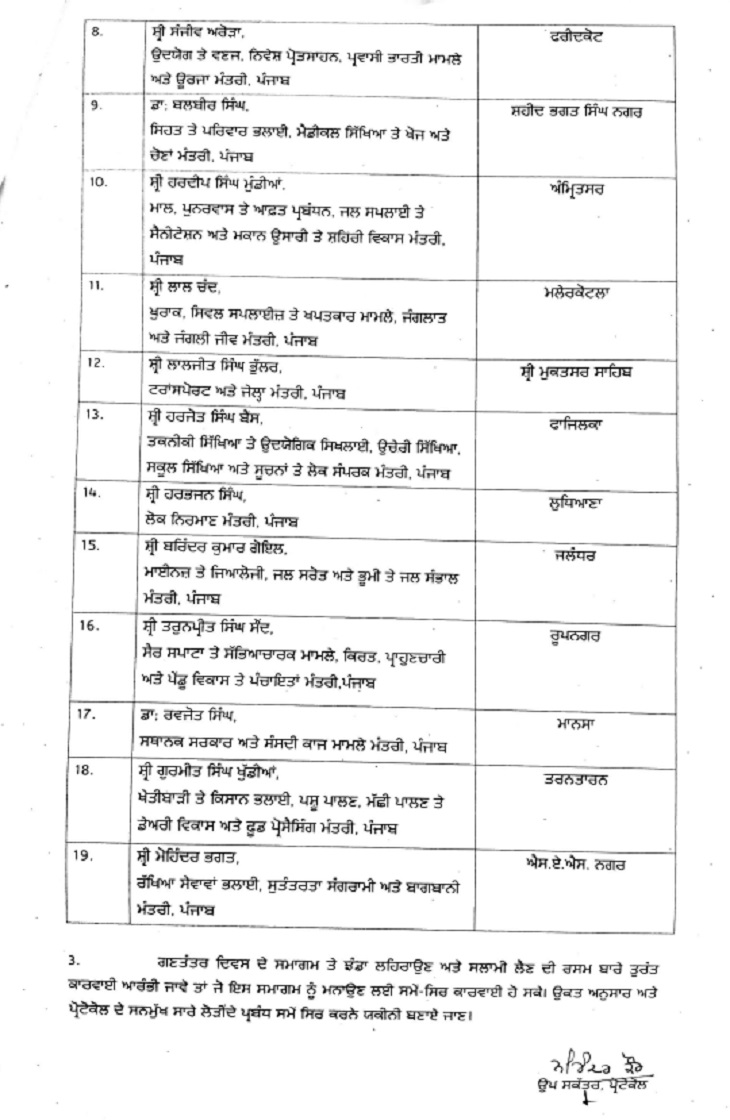 जबकि मुख्यमंत्री भगवंत मान होशियारपुर में राष्ट्रीय ध्वज फहराएंगे।